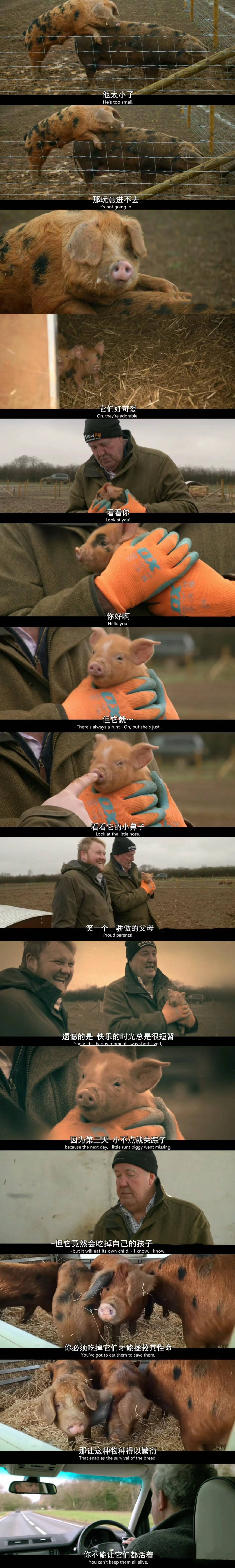 而经历了第一季的羊和鸡,第二季的牛之后,第三季不出意外的迎来了猪……是的,Jeremy这一季打算养猪了!而给猪配种和接生,照顾小猪仔也毫不意外的承担了本季80%的笑点,尤其Jeremy还要辅助种公播种,实在是太好笑了。而小猪仔也超出意料的可爱,让人不禁露出痴汉一般的笑容。