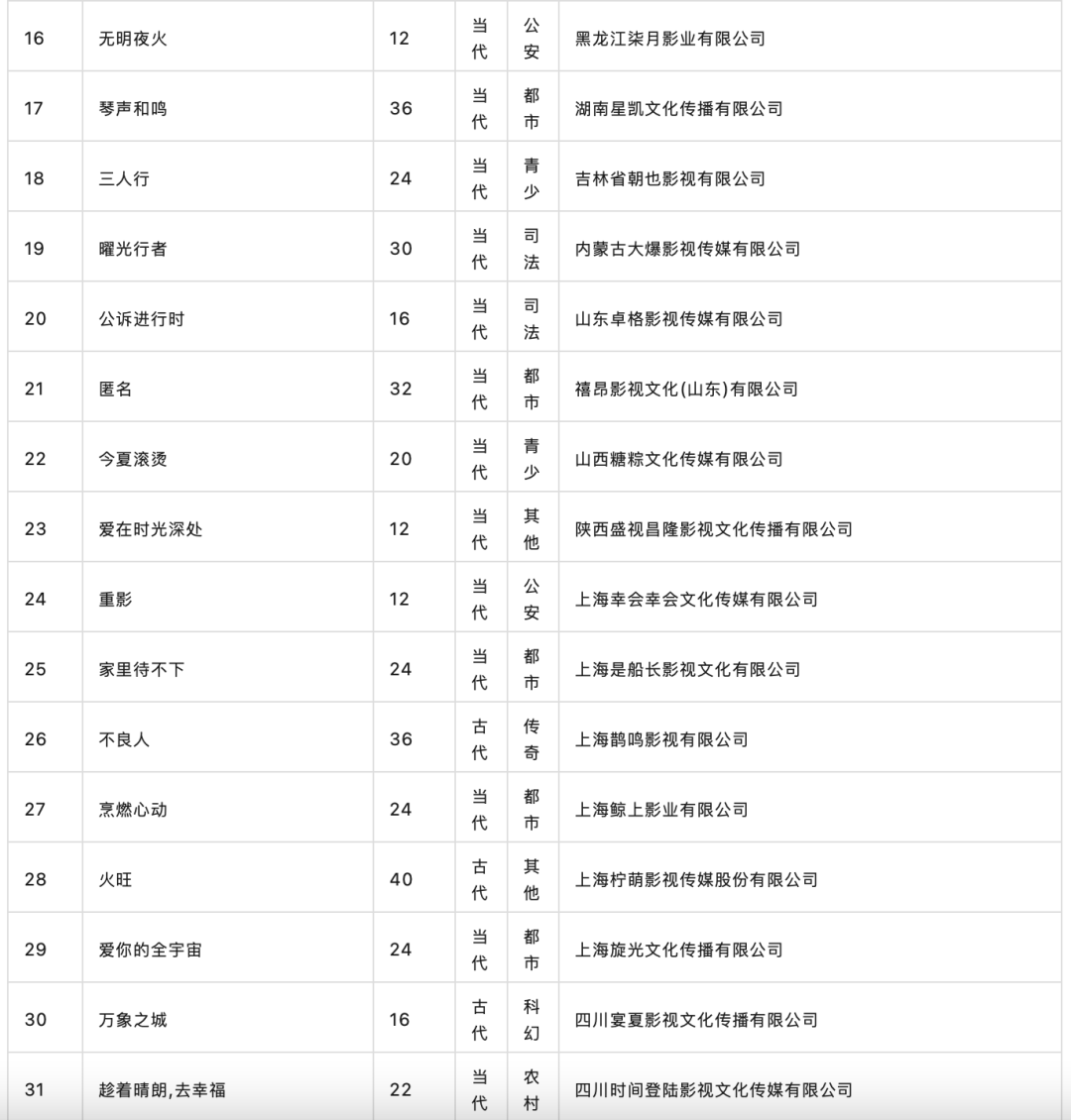 日前,广电总局发布《2024年5月全国重点网络剧、网络电影拍摄备案公示情况》。